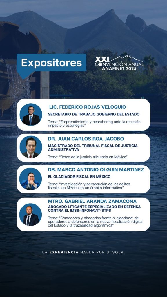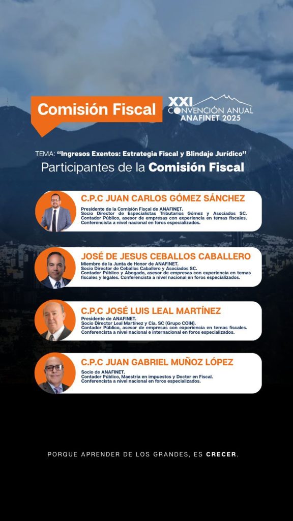 Como parte de difundir la cultura fiscal este año tendremos nuestra convención anual ANAFINET 2025 en Nuevo León, donde tendremos grandes ponencia con expositores de nivel nacional e internacional.